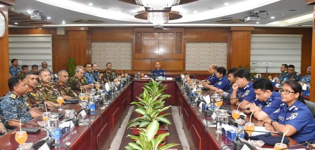 Trainee officers of Armed Forces Wear Course (AFWC)-2025 visited Police Headquarters on Tuesday (July 15) afternoon. The visit was organized as part of the course conducted by the National Defense College (NDC) at Mirpur Cantonment in the capital.