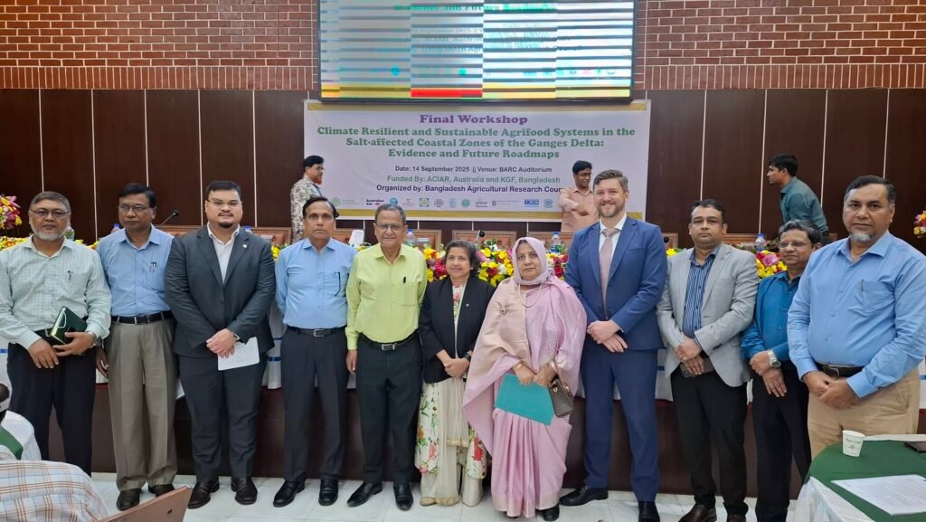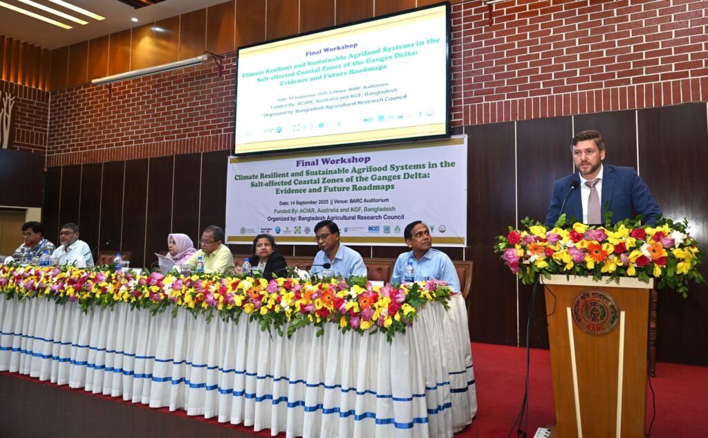 The workshop also showcased the work of Australian-funded projects supported by the Australian Centre for International Agricultural Research (ACIAR). In collaboration with the Commonwealth Scientific and Industrial Research Organisation (CSIRO), these projects are conducting research to integrate climate-resilient cropping systems and promote sustainable farming practices in salt-affected coastal areas of Bangladesh.