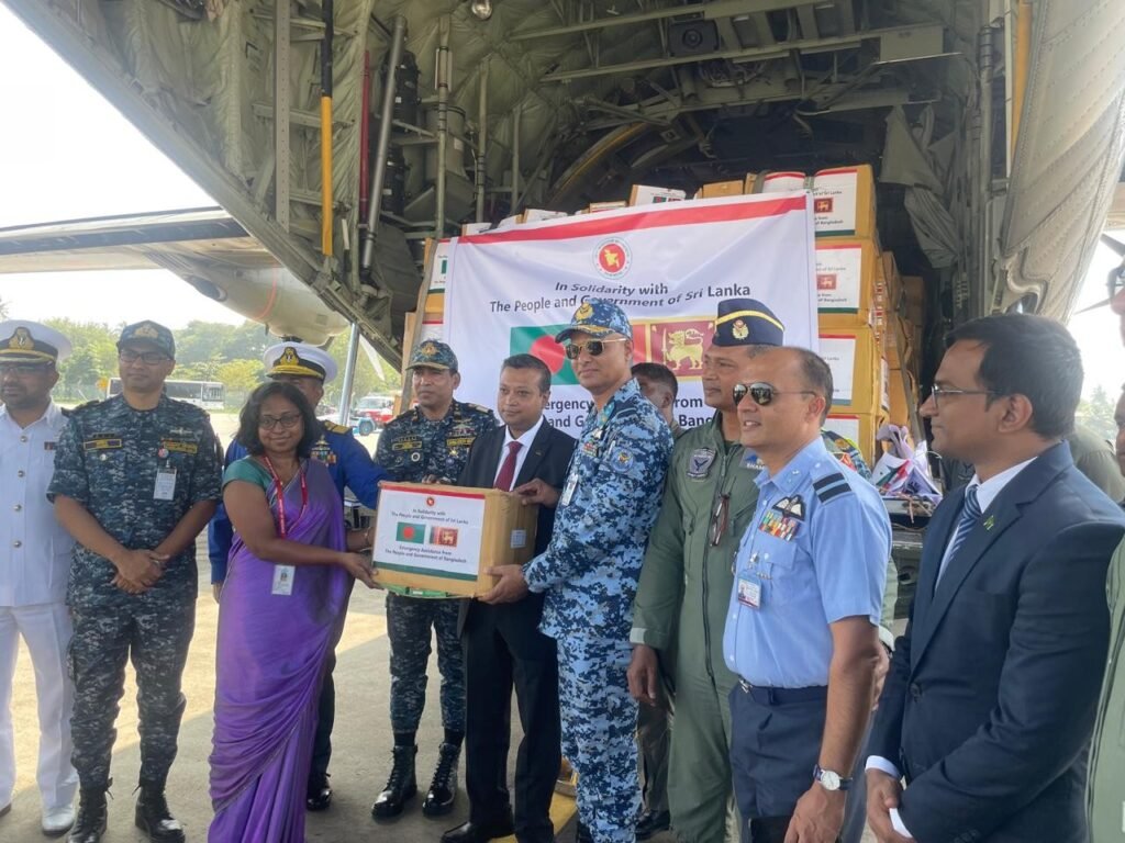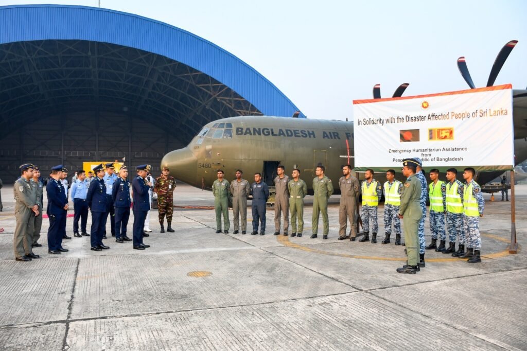 Bangladesh has dispatched emergency humanitarian assistance to Sri Lanka following the severe flooding and landslides triggered by Cyclone Ditwa, which caused widespread devastation across the country. Acting on the directive of the Hon’ble Chief Adviser of the Interim Government and under the coordination of the Armed Forces Division, the Bangladesh Air Force sent a C-130J transport aircraft carrying relief supplies on Monday (3 December 2025).
