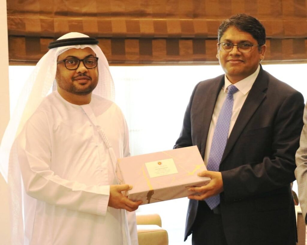 Mr. Md. Rasheduzzaman, Consul General of Bangladesh in Dubai, paid a courtesy call on Sheikh Saeed bin Saroor Al Sarki, Chairman of Fujairah Chamber of Commerce and Industry, United Arab Emirates, on Tuesday (July 15, 2025). In the meeting, constructive discussions were held on the expansion of bilateral trade and investment opportunities between Bangladesh and Fujairah.