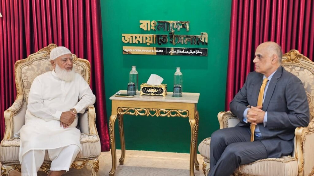 Present with the Ameer-e-Jamaat during the meeting were the party’s Assistant Secretary General and Head of the Central Propaganda and Media Department, Advocate Ehsanul Mahbub Zubair, Central Executive Council Member Mubarak Hossain, and Foreign Affairs Advisor Professor Dr. Mahmudul Hasan.