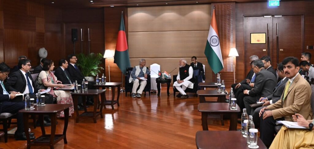 Bangladesh’s Chief Adviser Professor Muhammad Yunus and India’s Prime Minister Narendra Modi held a meeting today in Bangkok, the first time the two leaders have met officially in a decade.