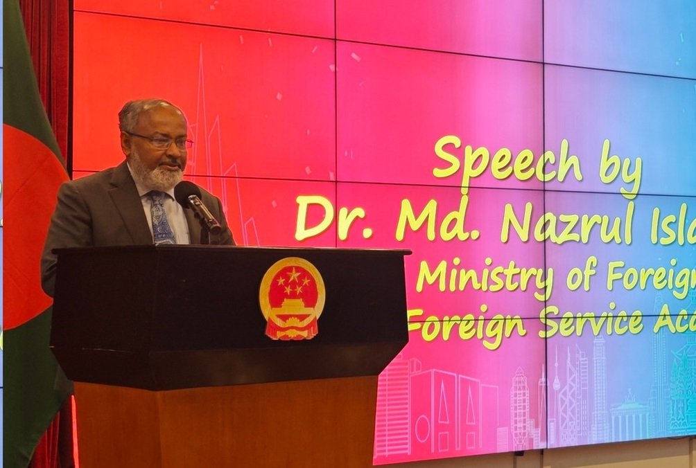 Dr. Md. Nazrul Islam thanked the Chinese Embassy and said that he was grateful for providing such valuable training opportunities for young diplomats of Bangladesh. He expressed his willingness to increase exchanges and cooperation with the Chinese Embassy on behalf of Bangladesh to elevate the multi-faceted strategic cooperation between the two countries to a higher level.