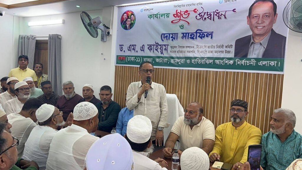 A BNP political office was inaugurated in the Rampura, Badda, Bhatara and Hatirjheel partial constituencies of Dhaka-11 constituency on Saturday (September 27, 2025). BNP National Executive Committee’s Micro and Credit Affairs Secretary Dr. MA Qayyum inaugurated it.