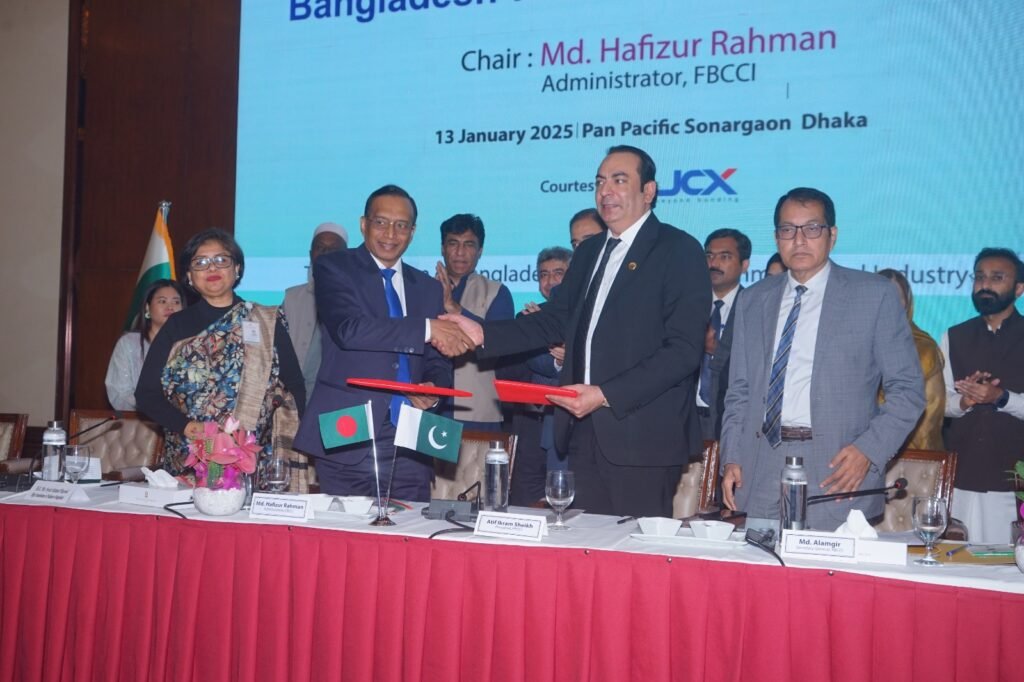 A Memorandum of Understanding was signed between FBCCI and FPCCI on the formation of a Joint Business Council to strengthen trade between Bangladesh and Pakistan.