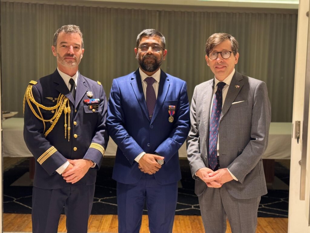 The Honorable French Ambassador to Bangladesh, Mr. Jean-Marc Séré-Charlet, presented the honorary ‘National Defense Medal – Gold Level’ to Brigadier General Mohammad Azharul Islam, AFWC, psc, on behalf of the French government at a ceremony held at his residence on Tuesday (25 November 2025). Brigadier General Azhar has created history by becoming the first Bangladeshi Army officer to receive this medal.