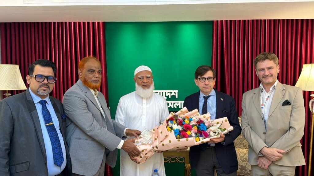 The French Ambassador to Dhaka, His Excellency Mr. Jean-Marc Serre-Charle, paid a courtesy call on the Ameer of Bangladesh Jamaat-e-Islami, Dr. Shafiqur Rahman. The meeting, held at 3 pm on Wednesday (November 19, 2025) at the Bashundhara office of the Ameer-e-Jamaat, was held in a cordial and cordial atmosphere. The ambassador was accompanied by Christian Beck, Political Counselor of the French Embassy.