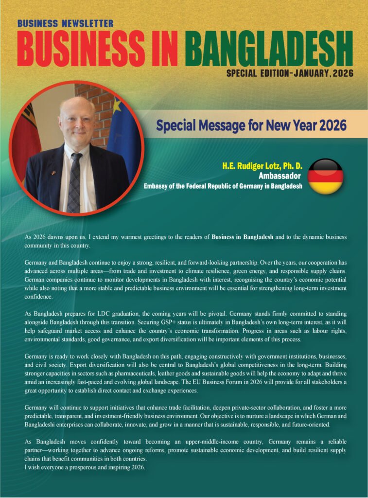 German Ambassador to Dhaka gives special message in ‘Special January, 2026 Edition’ of “Business in Bangladesh Newsletter” on the occasion of English New Year.