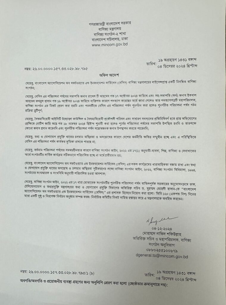 The government has appointed Dr Muhammad Mehedi Hasan, additional secretary of the Information and Technology Division, as the administrator of the Bangladesh Association of Software and Information Services (BASIS).