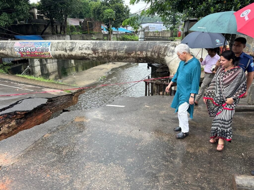 Industrial Advisor Adilur Rahman Khan inspected the collapsed bridge over Shital Jharna Canal in the Star Ship area of Bayezid Bostami Road in Chittagong city on Friday (July 8, 2025) morning.