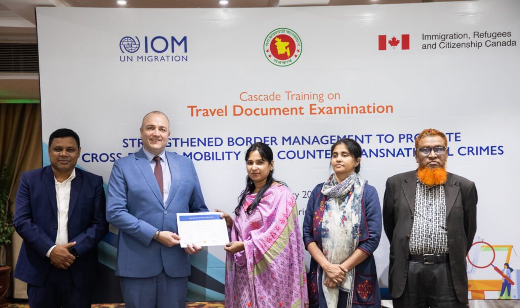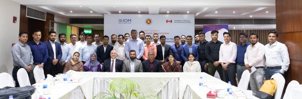 Earlier this year, the International Organization for Migration (IOM) – UN Migration in Bangladesh, in collaboration with the Special Branch (SB) of Bangladesh Police, successfully conducted three Travel Document Examination training sessions. A total of 85 immigration officers from major Border Control Points (BCPs), including Hazrat Shahjalal International Airport, participated in these sessions.
