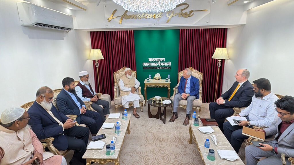 On Tuesday (November 25, 2025), the Honorable Ameer of Bangladesh Jamaat-e-Islami Dr. Shafiqur Rahman met with the former Health Minister of the Republic of Kosovo, Professor Dr. Rifat Latifi, who is visiting Dhaka, in a courtesy call at the Bashundhara office of the capital. The Ambassador of Kosovo to Bangladesh, Mr. Luljim Plana, was present at the meeting.