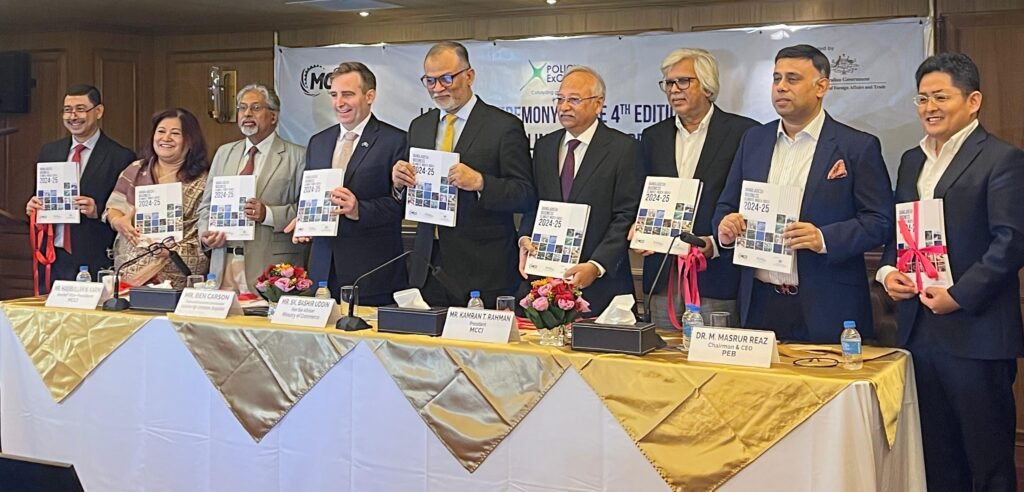 The launch event took place at the MCCI Gulshan office, bringing together senior policymakers, business leaders, private sector leaders, industry-business experts and development partners. Honorable Commerce Adviser to the Government of Bangladesh, Mr. Sk. Bashir Uddin, graced the occasion as Chief Guest, while Mr. Ben Carson, Australian Trade and Investment Commissioner at Australian Trade and Investment Commission (Austrade), Bangladesh, joined as Guest of Honor.