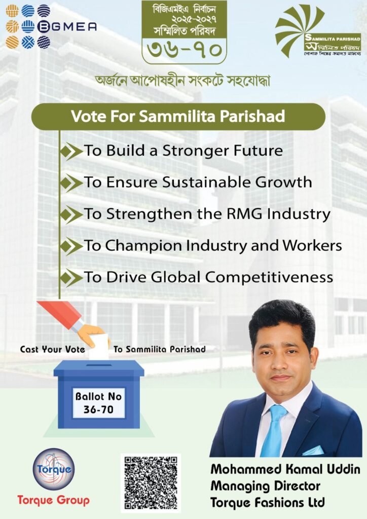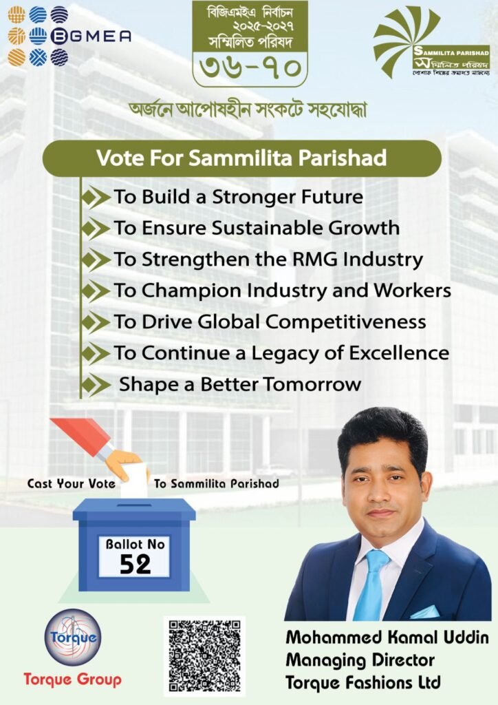 Muhammad Kamal Uddin is contesting as a candidate for the Sammilito Parishad in the Bangladesh Garments Manufacturers and Exporters Association (BGMEA) elections 2025–2027. He is a proven entrepreneur and hardworking organizer, who is working tirelessly for sustainable development and market diversification in the country’s garment industry.