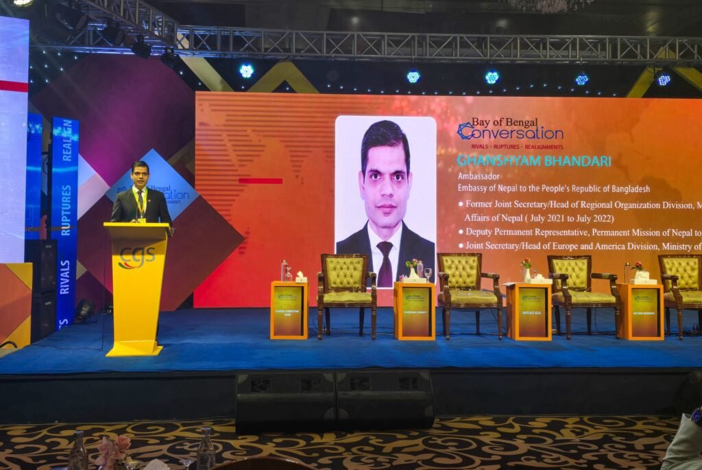 Nepalese Ambassador to Bangladesh, Mr. Ghanashyam Bhandari, addressed the “Ambassadorial Reflections” segment of the Bay of Bengal Conversation 2025 on Saturday afternoon (22 November 2025) in Dhaka.