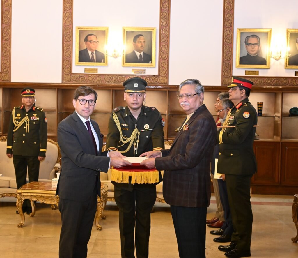 The newly appointed French ambassador, Jean-Marc Séré-Charlet, presented his credentials to His Excellency the President of the People’s Republic of Bangladesh, Md. Shahabuddin, on Wednesday. He assumed office as the 18th Ambassador of France to Bangladesh.