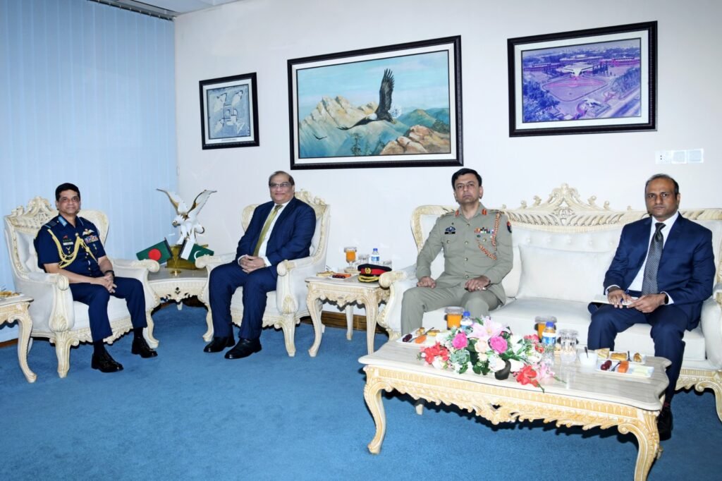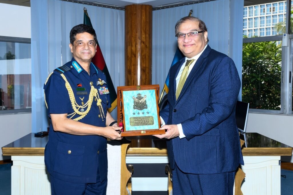 The Chief of Air Staff, Air Chief Marshal Hassan Mahmud Khan, BBP, OSP, GUP, NSWC, PSC, was paid a courtesy call on Pakistan High Commissioner to Bangladesh, Mr. Imran Haider, at the Bangladesh Air Force Headquarters on Tuesday (25 November 2025).