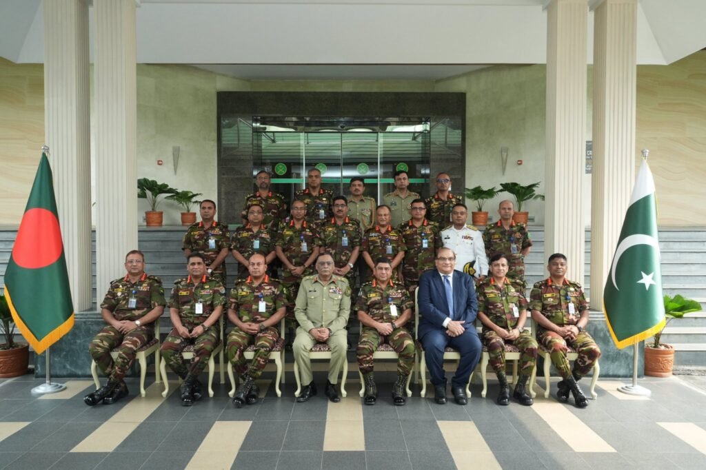 A high-level delegation led by Pakistan’s Joint Chiefs of Staff Committee Chairman General Sahir Shamshad Mirza paid a courtesy call on the Bangladesh Army Chief at the Army Headquarters on Tuesday (October 28, 2025).