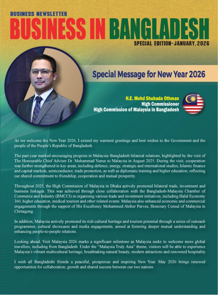 The High Commissioner of Malaysia in Dhaka has given a special message in the ‘Special January, 2026 Edition’ of the “Business in Bangladesh Newsletter” on the occasion of the English New Year.