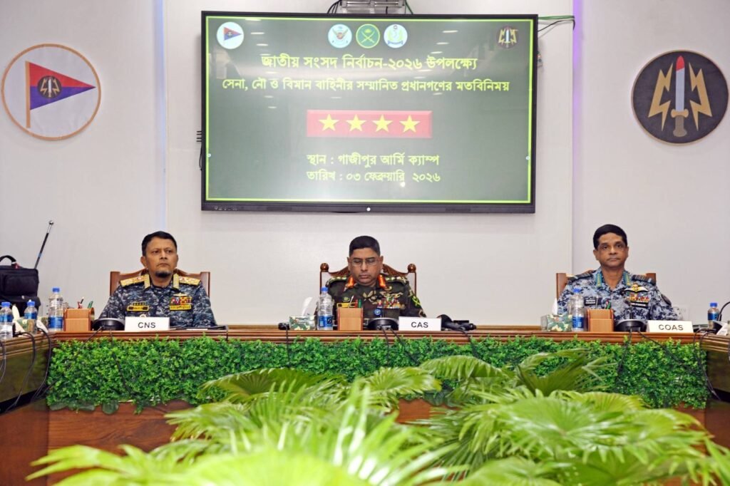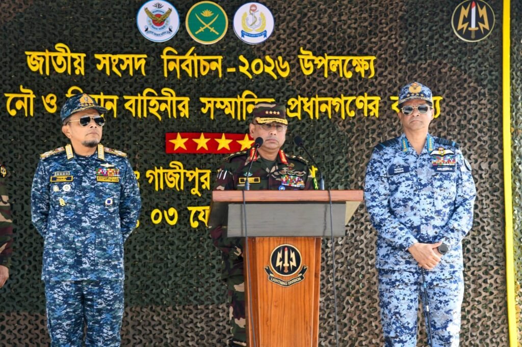 The three service chiefs visited Gazipur on Tuesday (February 3, 2026) to assess the overall law and order situation and inspect the activities of the armed forces deployed under the ‘In Aid to Civil Power’ program, focusing on the upcoming 13th parliamentary elections and referendum-2026.