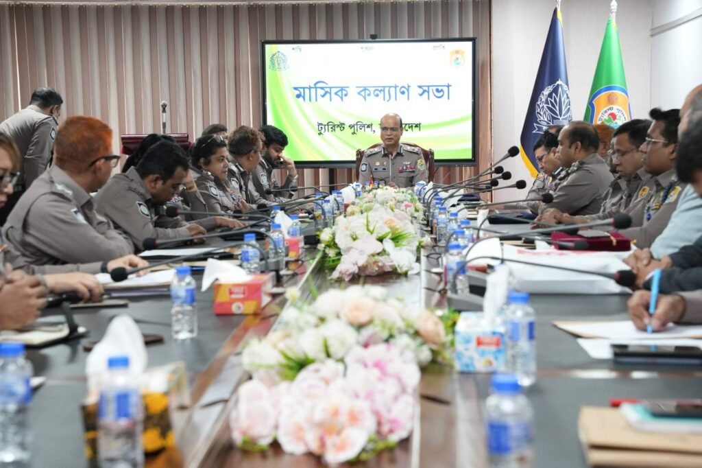 The monthly welfare meeting of the Tourist Police was held at the conference room of the Tourist Police Headquarters, Dhaka. The meeting was presided over by the Chief of Tourist Police, Mr. Md. Mainul Hasan, BPM, PPM, ndc, Additional IGP (Current Duty).