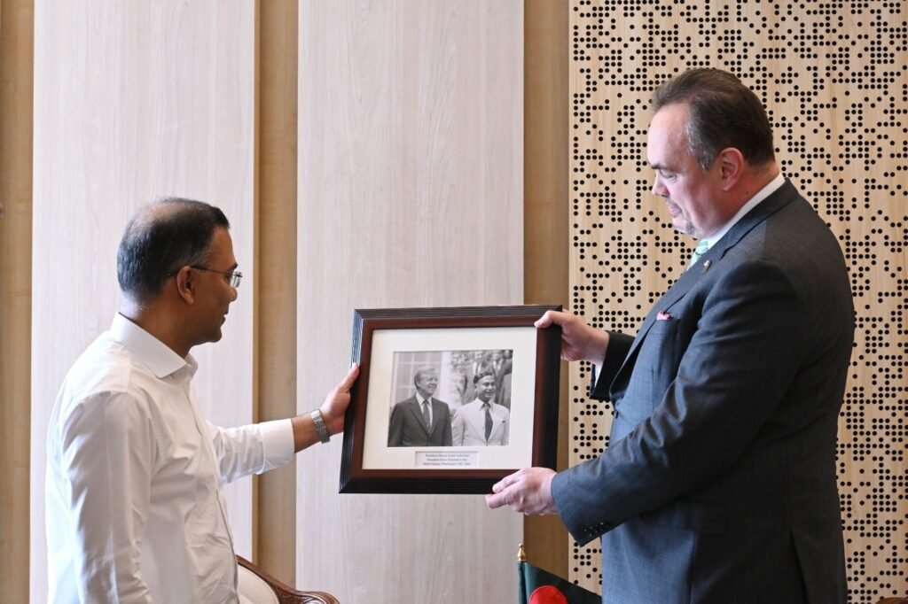 During the meeting, Ambassador Brent T. Christensen handed over two historical photographs and a replica of the White House to Prime Minister Tarique Rahman. One of the photographs shows martyred President Ziaur Rahman and former US President Jimmy Carter. The other photograph shows former Prime Minister Begum Khaleda Zia and former US President George H. W. Bush.